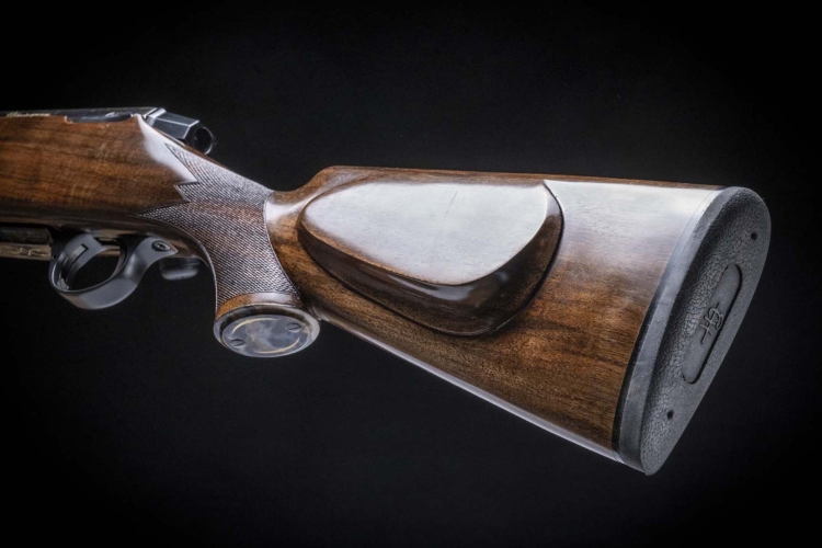 Il calcio ha un tradizionale profilo Mauser, con ampio poggiaguancia sul fianco sinistro; è ricavato da noce europeo selezionato con puntale in palissandro, ed è zigrinato e lucidato a mano ad olio.